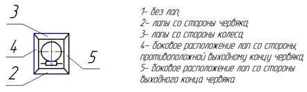 • 5. двигатель расположен вертикально вверх, тихоходный вал горизонтальный;