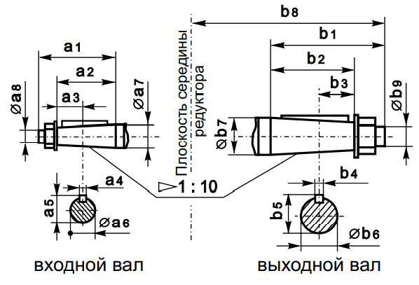 Размеры конических концов валов